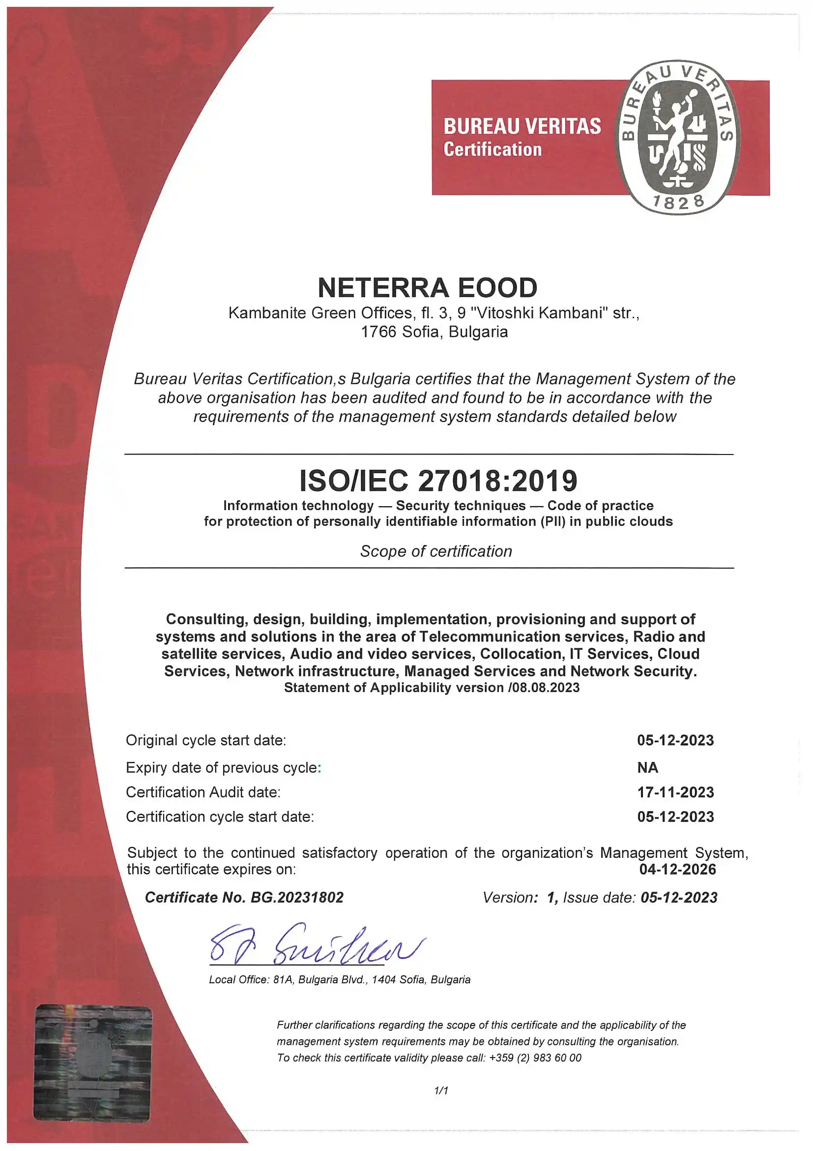 We are certified according to the international standards ISO 9001, ISO 27001, ISO 20000, ISO 27701, ISO 27018, ISO 22301, ISO 50001 and PCI DSS for high-quality products and services.